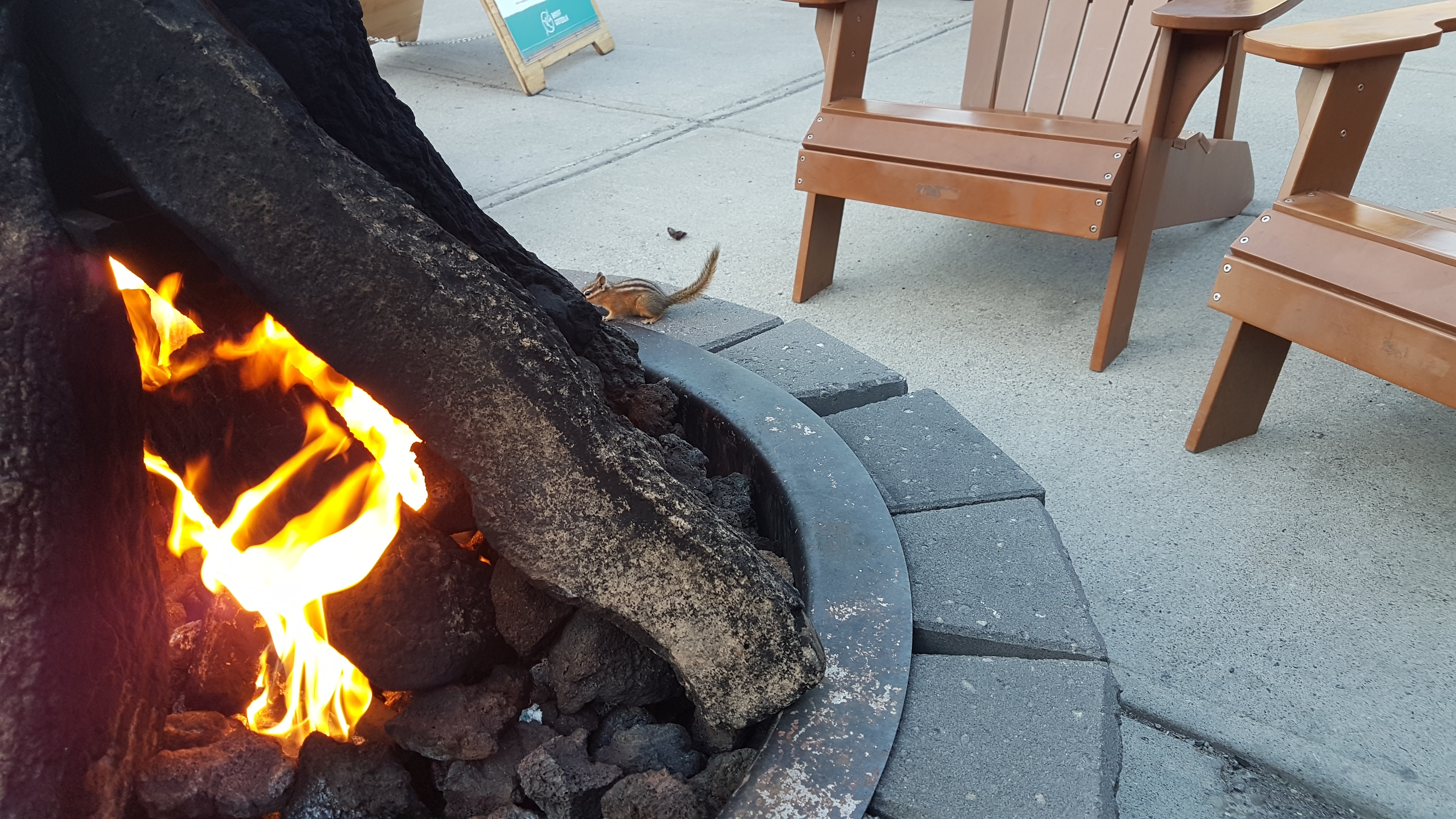 Wir warteten dann draußen an einem kleinen Lagerfeuer knapp 5 Minuten, wobei ein Streifenhörnchen fast hineingelaufen wäre. 🐿 Da es nicht mehr lange dauerte bis der Bus kam, habe ich es leider nicht geschafft ein Foto von dem Warnschild zu machen.