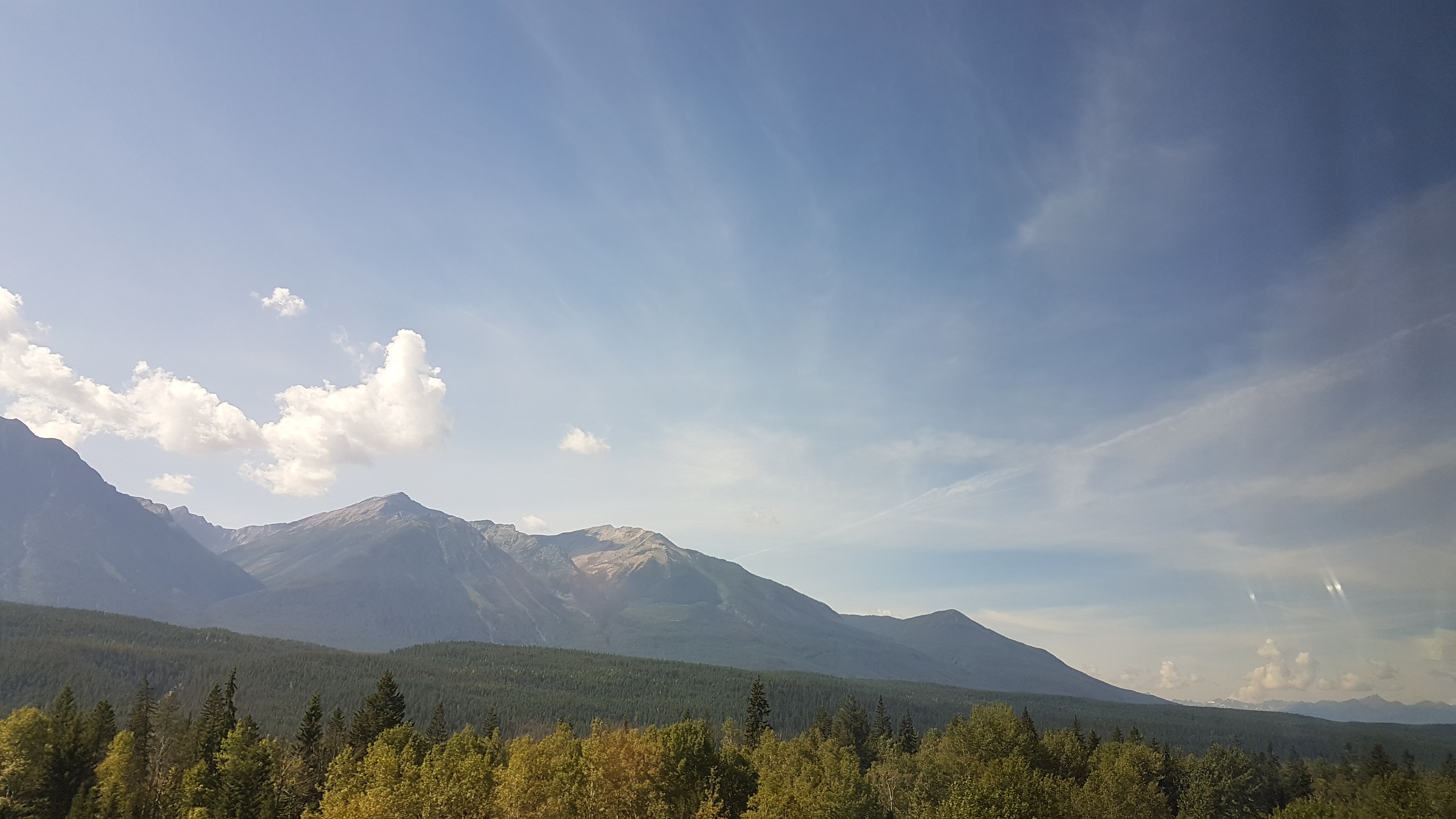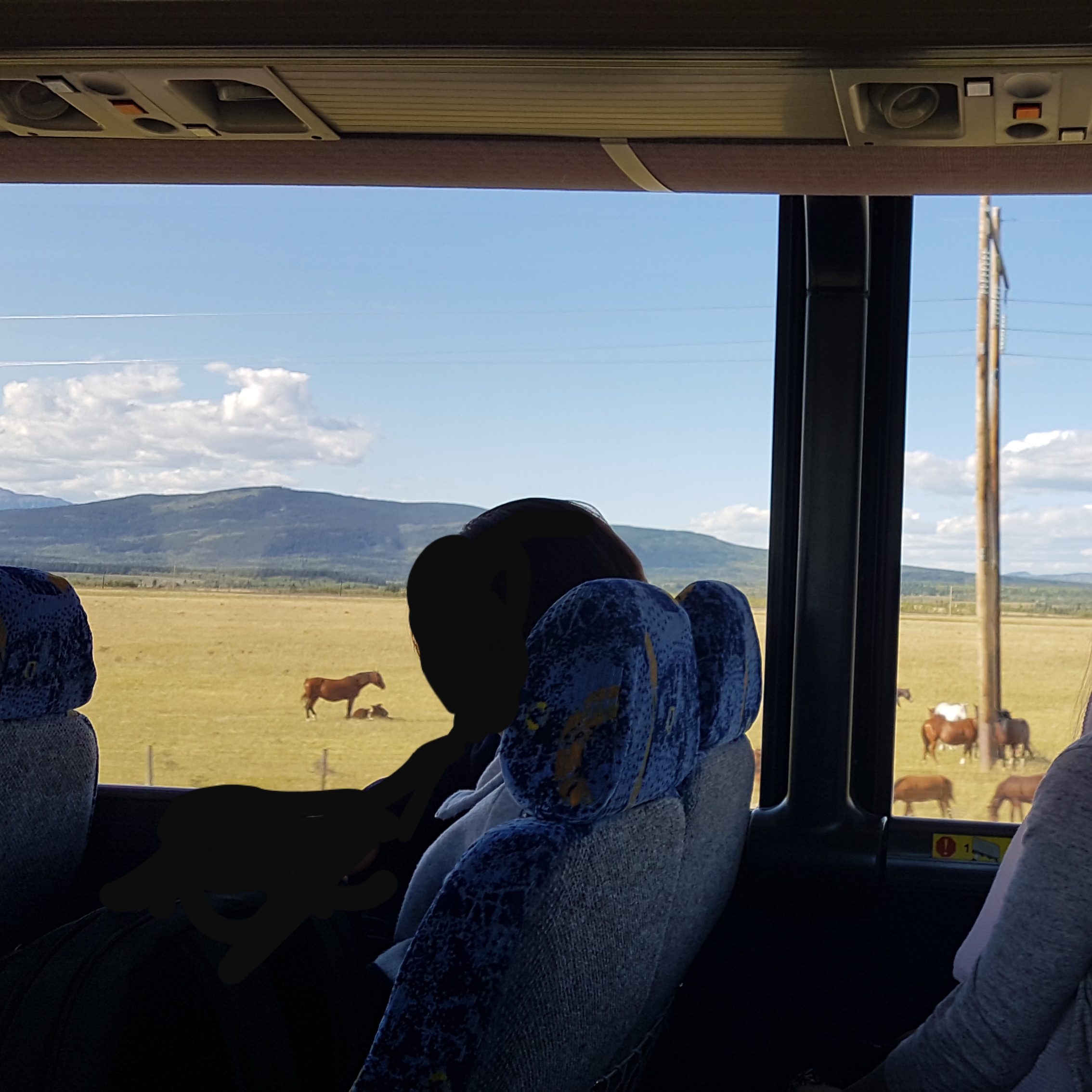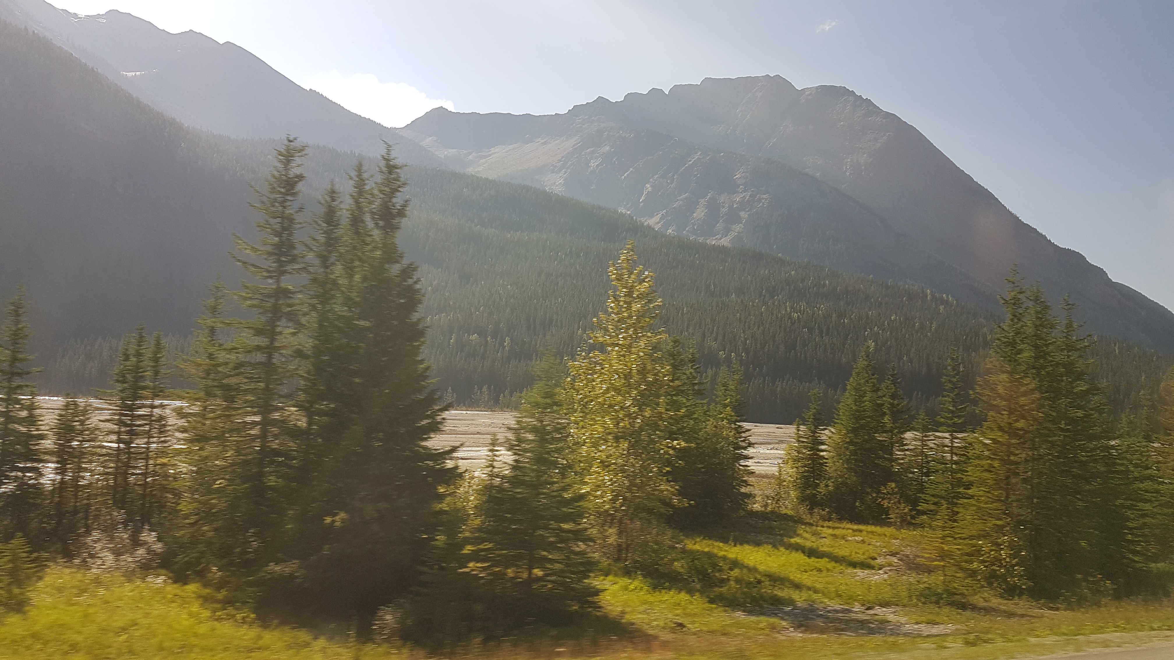 Mit dem Bus waren wir bald schon in den Rocky Mountains. Ein wunderbares Naturerlebnis! Auch schon vom Bus aus.